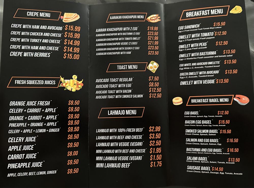 Highlights from their menu include Jengyal Bread with Greens ($9.99) and mouth-watering Khachapuri ($2.50). For heartier meals, savor the Khash With Meat ($19.99) or indulge in their renowned frozen homemade delights like Blinchik Beef or Pelmeni, both priced at $19.99.